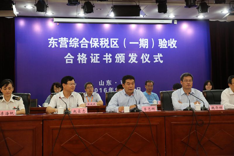 9月26日上午,東營(yíng)綜合保稅區(qū)(一期)正式通過(guò)由中國(guó)海關(guān)總署牽頭、國(guó)家十部委組成的國(guó)務(wù)院聯(lián)合驗(yàn)收組的驗(yàn)收,并獲頒驗(yàn)收合格證書。